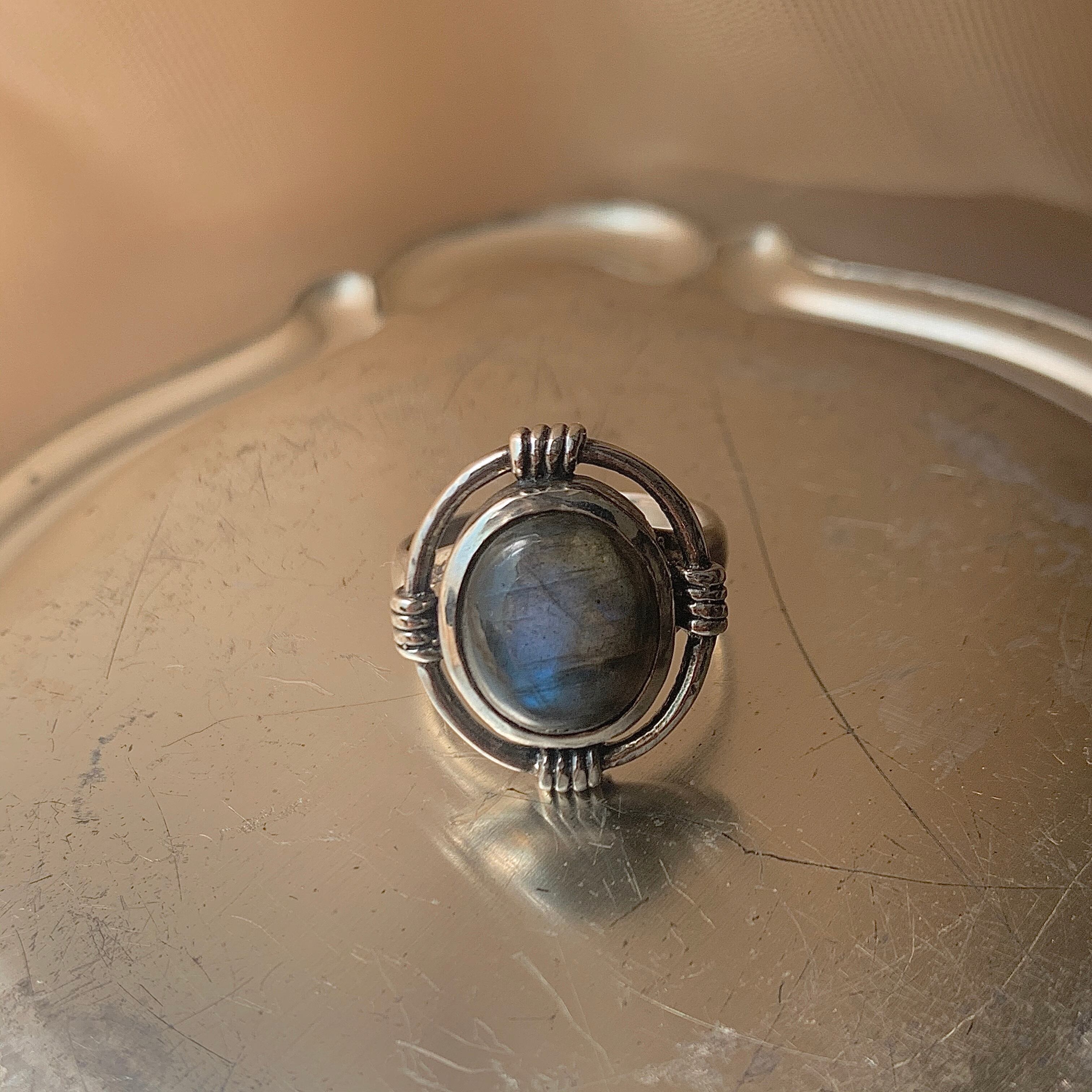 ラブラドライトの天然石を使用した大ぶりのリング
