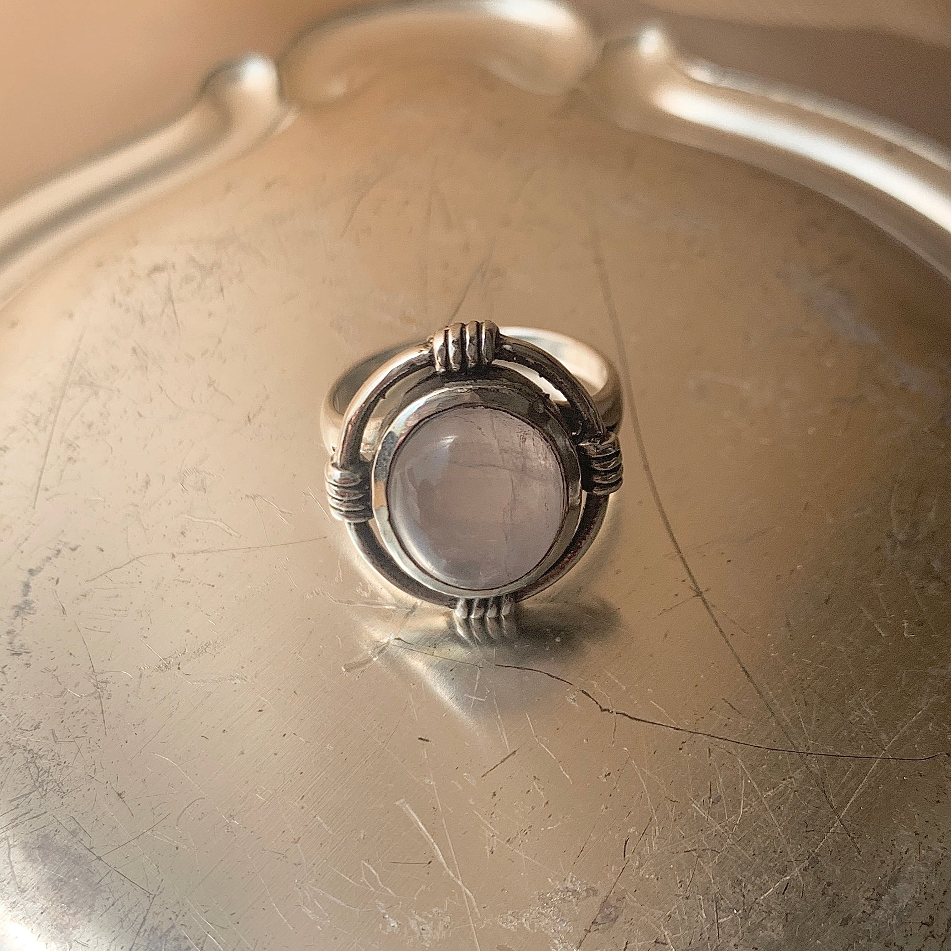 ローズクォーツの天然石を使用した大ぶりのリング