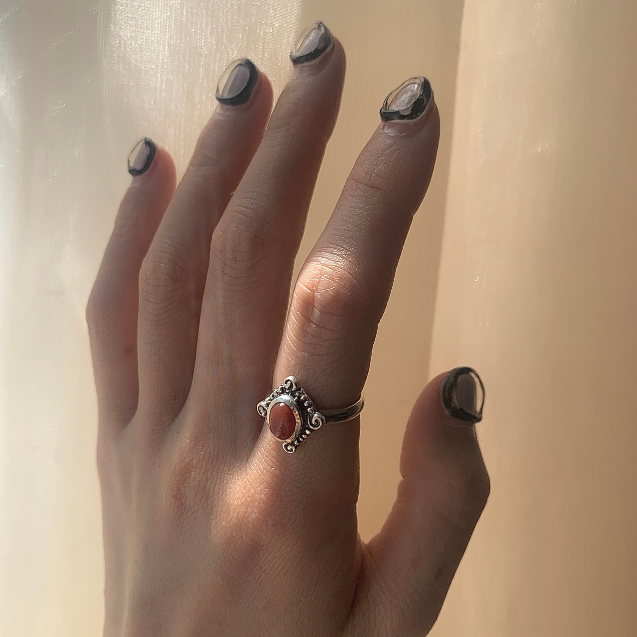 カーネリアンの天然石を使用したトライバル調のリング