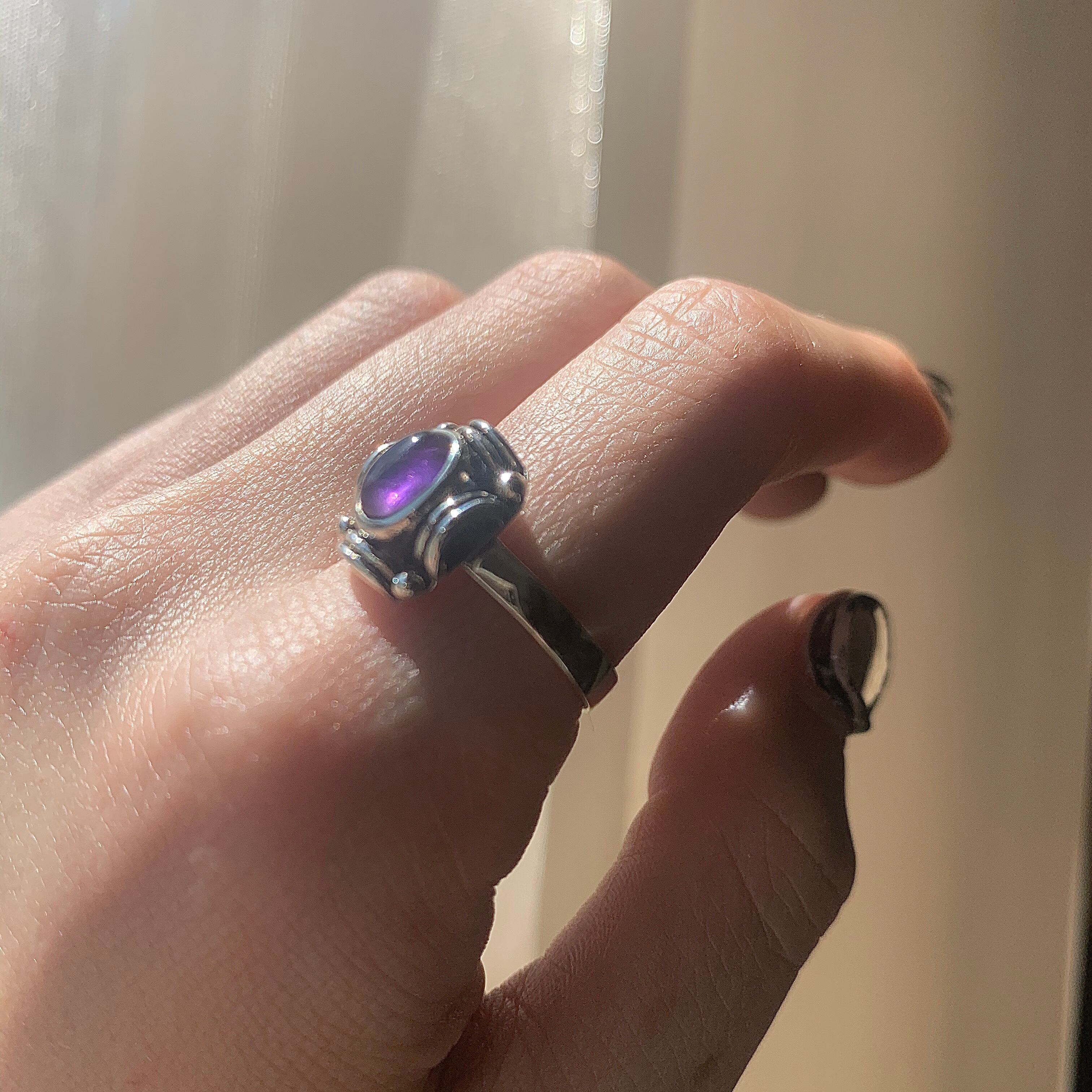 アメジストの天然石を使用したスクエア型のリング
