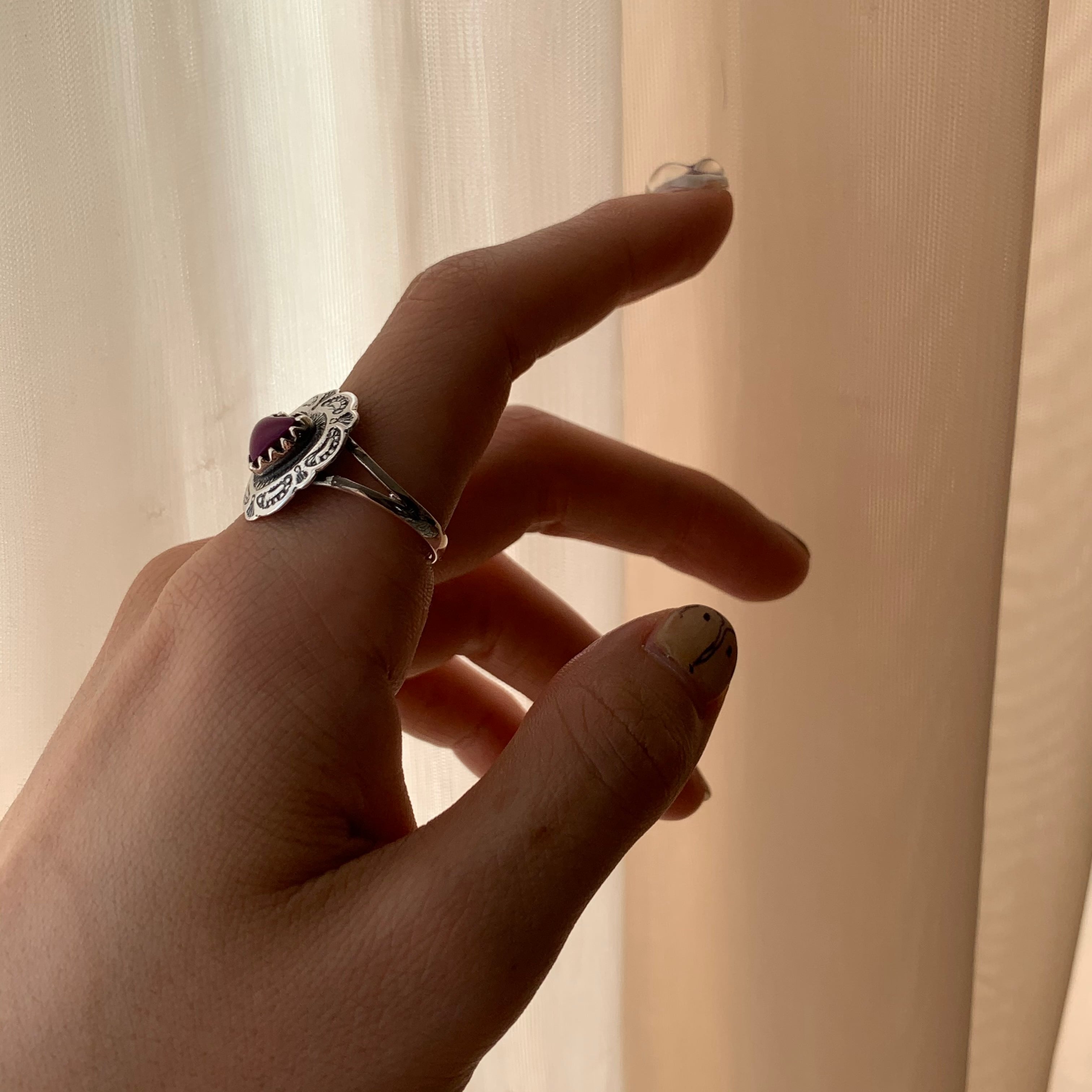 パープルストーンの入った伝統的なコンチョリング